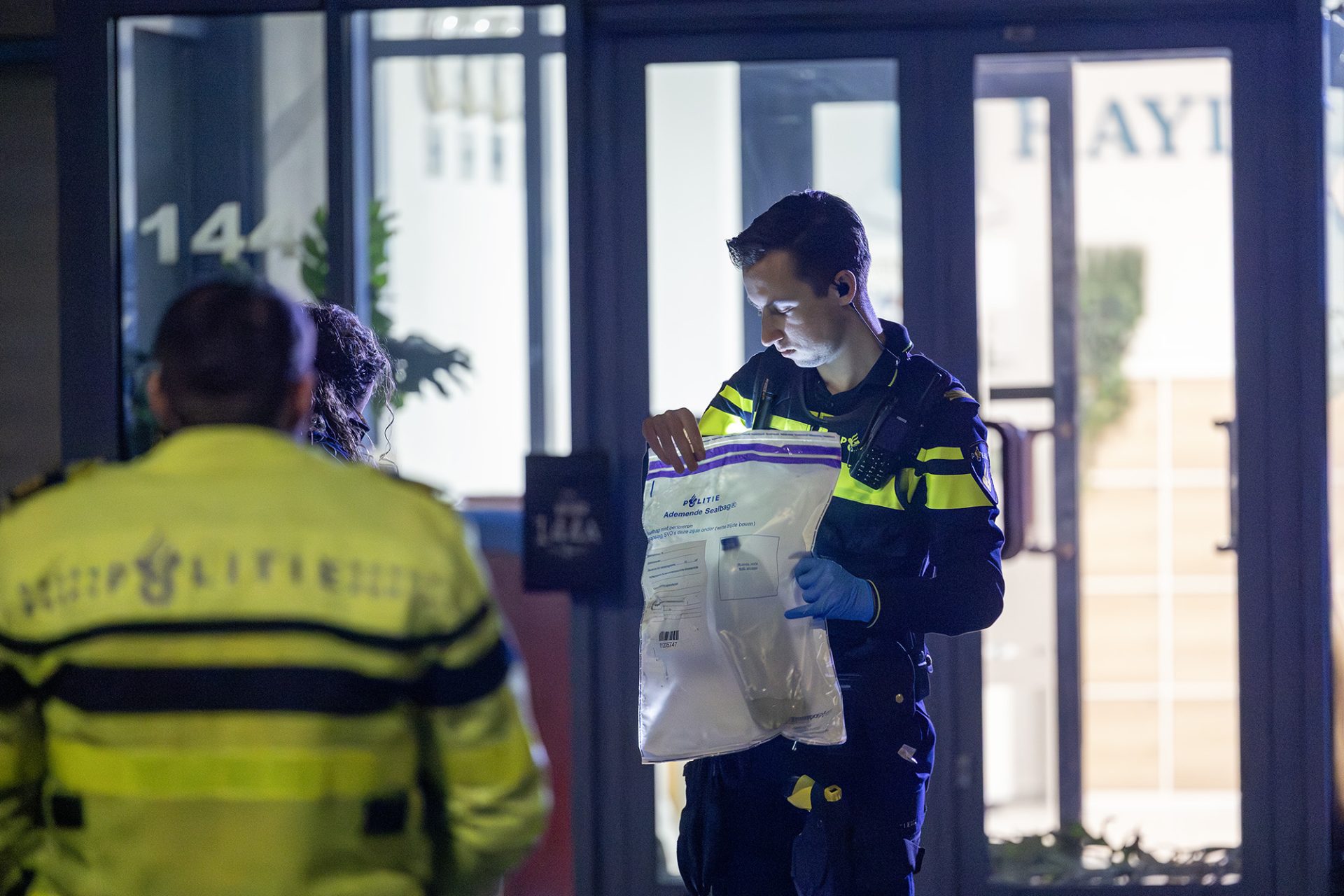 De politie heeft de omgeving ruim afgezet voor onderzoek. Ter plaatse werden onder meer een tas van supermarktketen Dirk en een flesje met daarin nog een kleine hoeveelheid vloeistof aangetroffen. Deze voorwerpen zijn veiliggesteld en meegenomen voor sporenonderzoek.