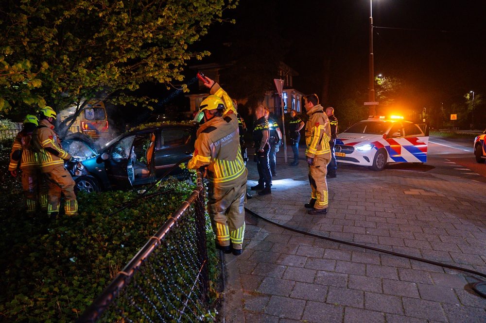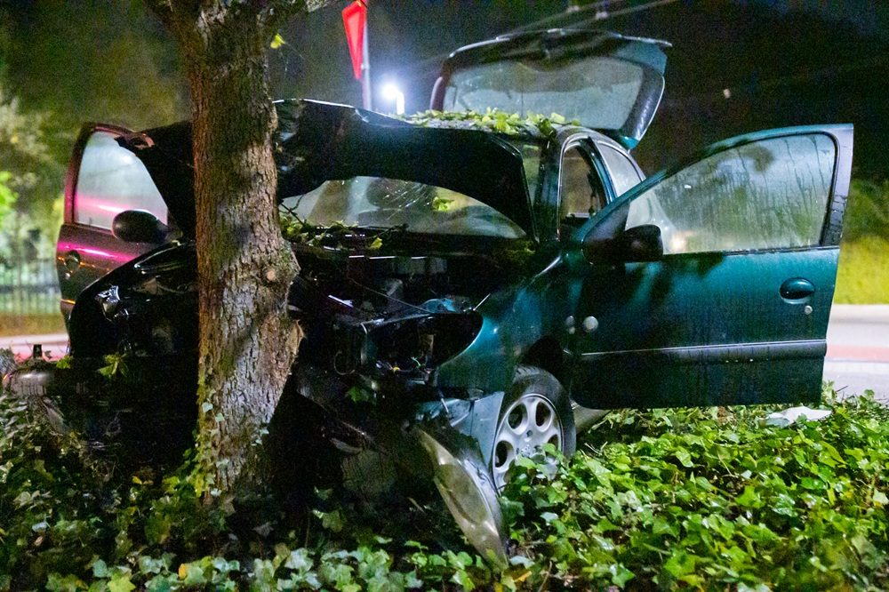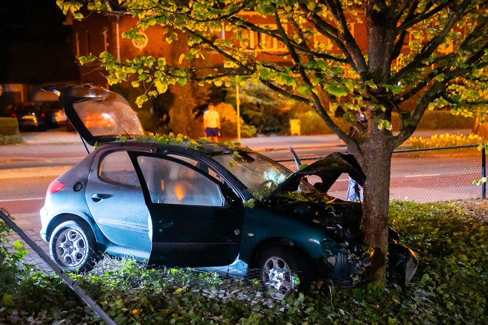 Wilde politieachtervolging eindigt met crasht tegen boom