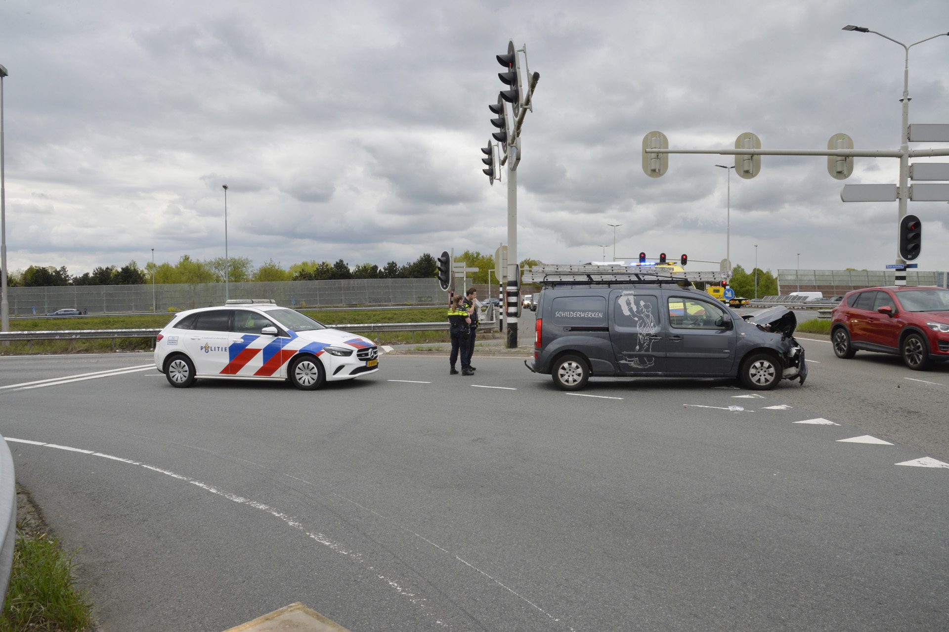 Het ongeval gebeurde bovenaan de afrit. De auto liep flinke schade op aan de voorzijde. De bestuurder is in een ambulance gecontroleerd op verwondingen. Of hij naar het ziekenhuis is gebracht, is niet bekend. Een opgeroepen traumahelikopter werd later afgemeld.