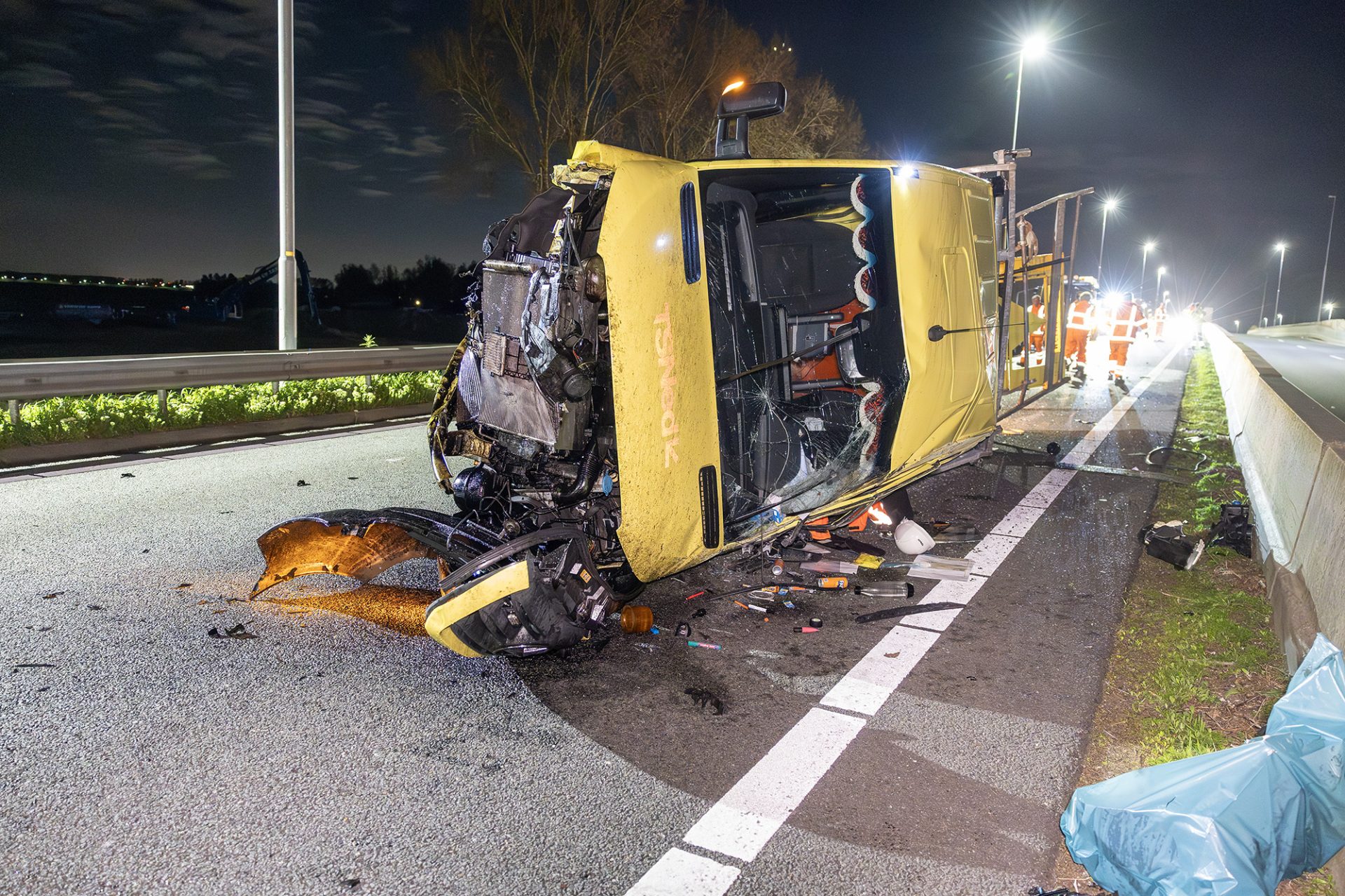Bizar ongeval: Werkbus botst op vrachtwagen op afgesloten snelweg