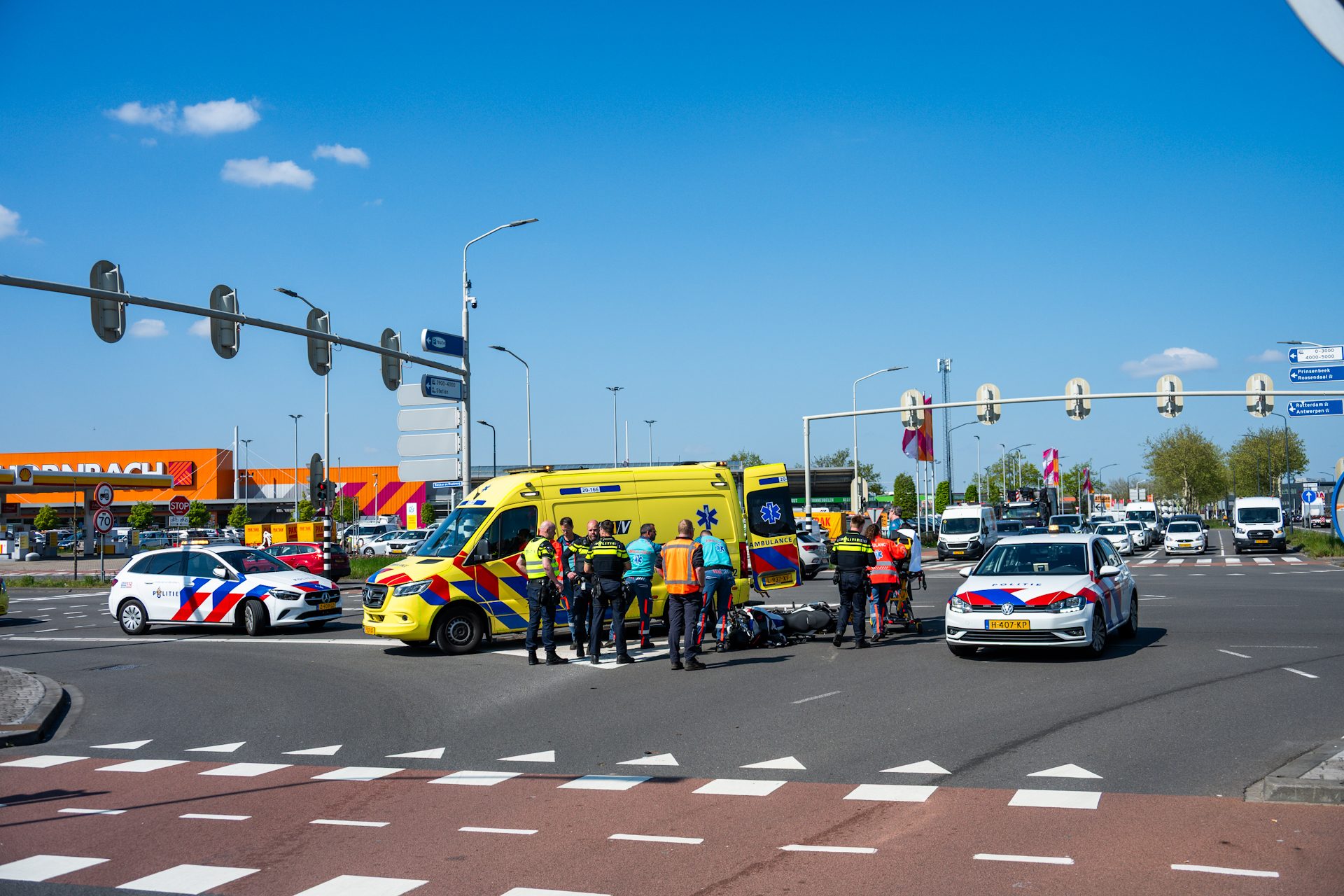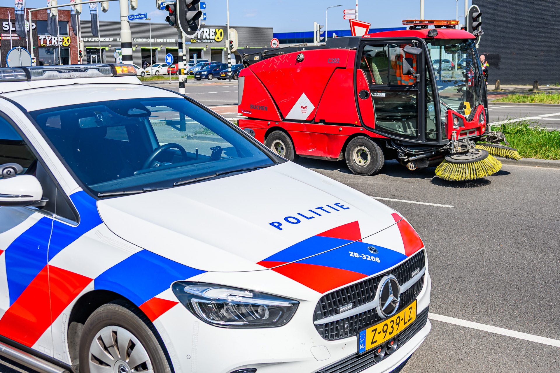 BREDA – Dinsdagmiddag rond 15:00 uur zijn een motorrijder en een veegwagen met elkaar in botsing gekomen op de kruising van de Backer en Ruebweg met de Konijnenberg in Breda.