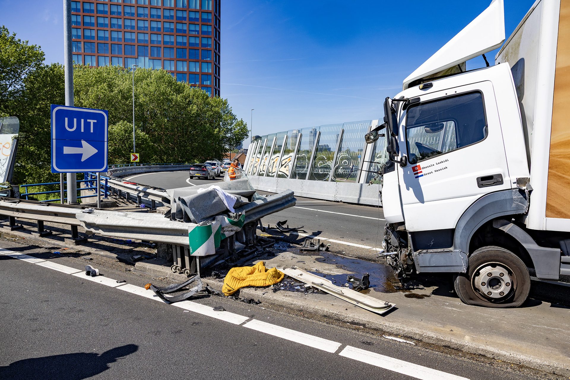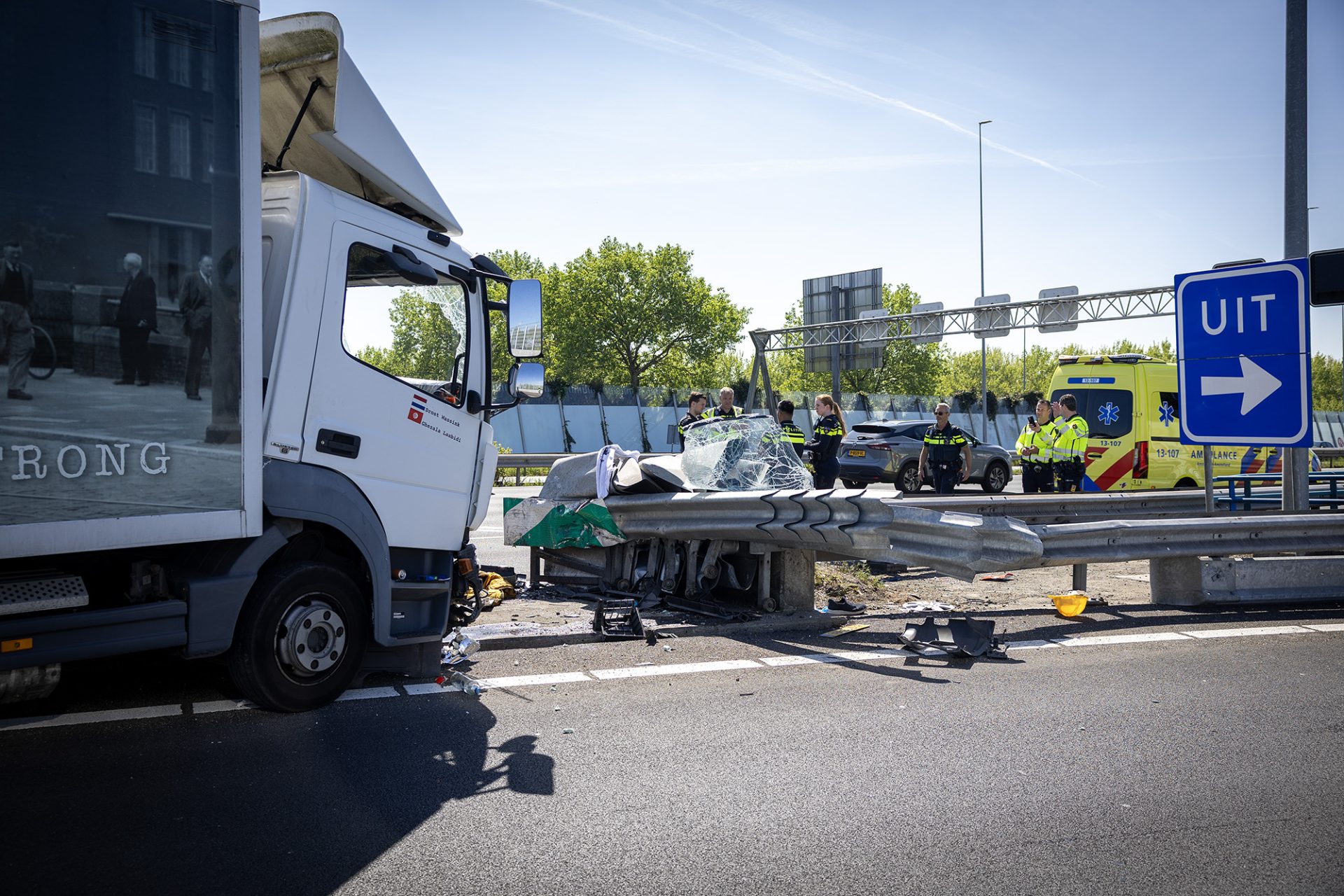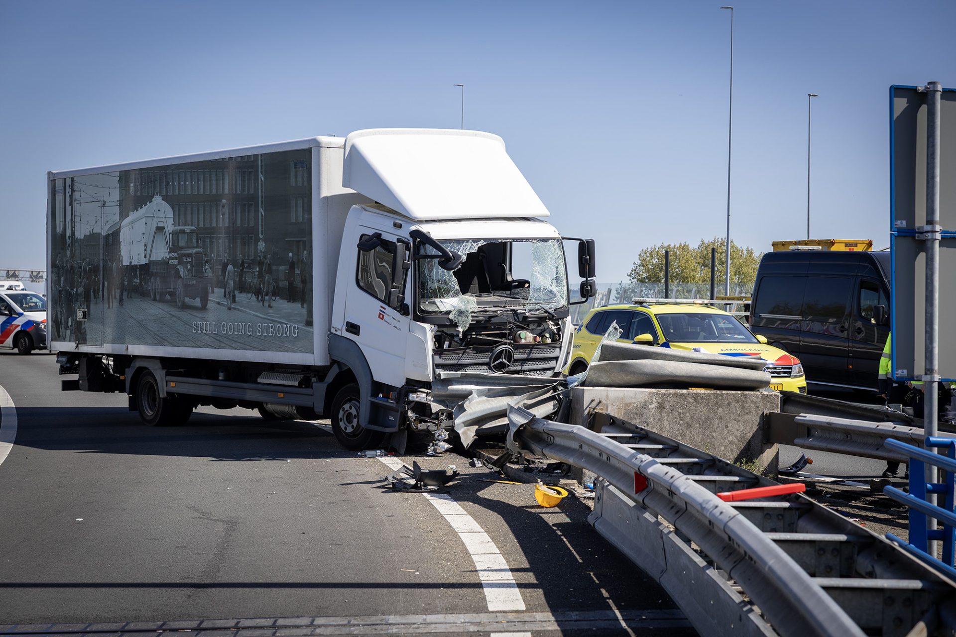 AMSTERDAM – Donderdagmiddag heeft zich op de A10 bij afrit S112 een ongeval voorgedaan waarbij een vrachtwagen tegen de wegafscheiding, een zogenaamde RIMOB (Rimpelbuis-Obstakelbeveiliger), botste. Het incident leidde tot flinke verkeershinder op de ringweg.