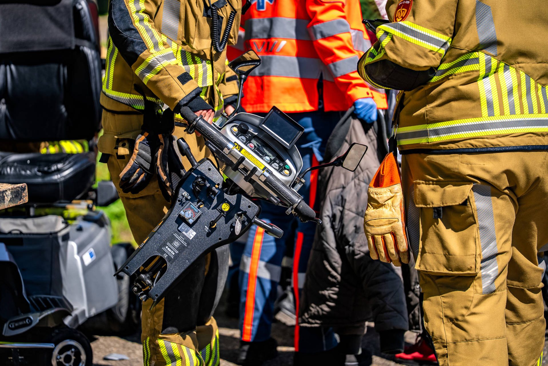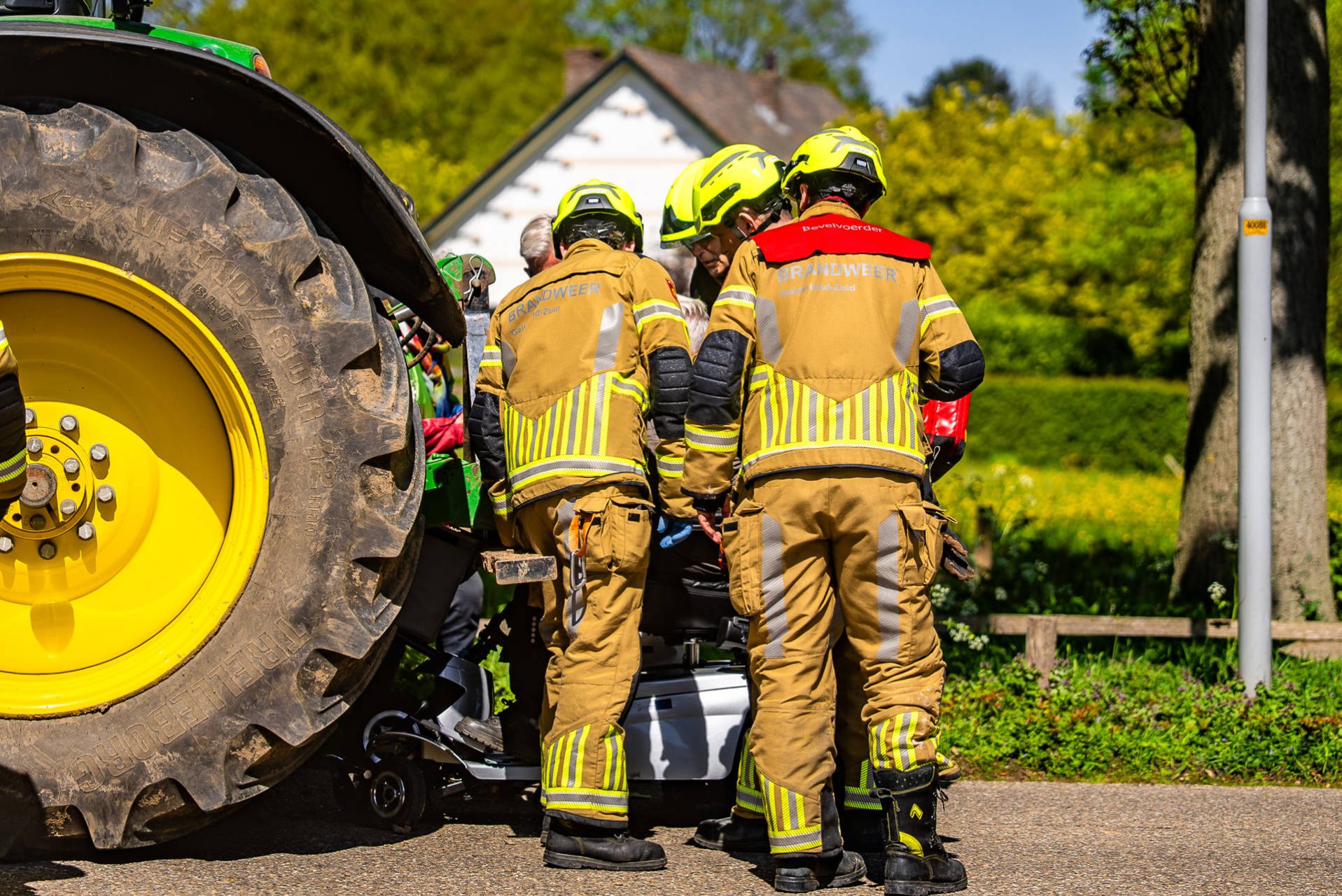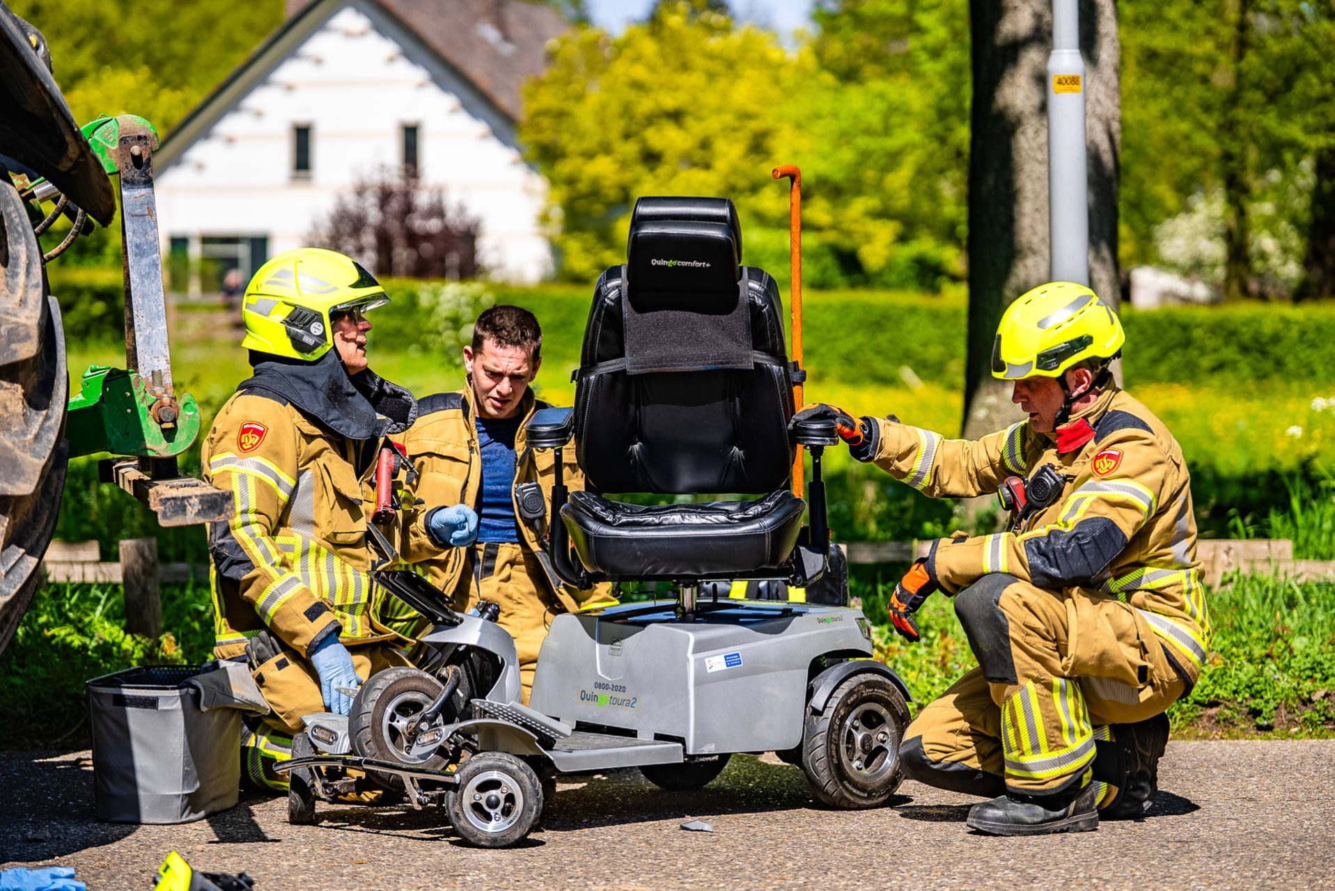 Man in scootmobiel komt bekneld te zitten achterop tractor