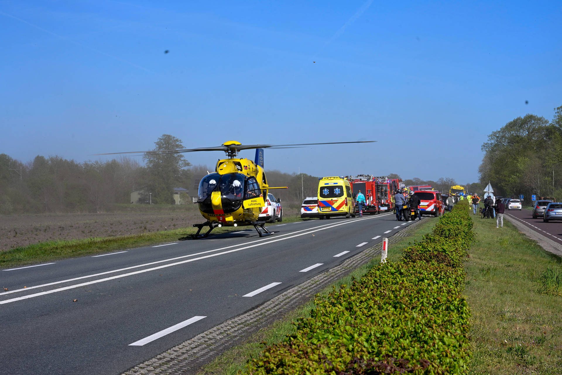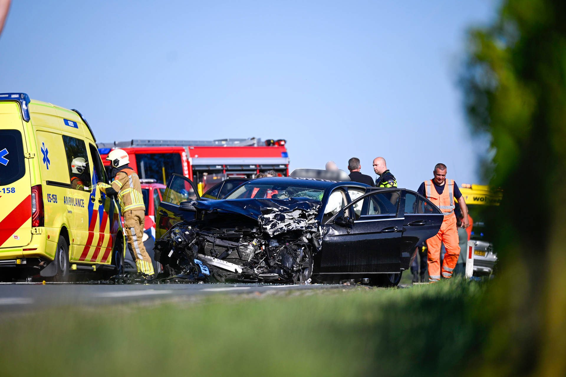 WIERDEN β Zaterdagmiddag rond 16:30 uur heeft zich op de N35 een ernstig ongeval voorgedaan tussen een taxi en een brandweervoertuig. De harde botsing leidde tot enorme schade: de voorkant van de taxi was volledig verwoest en de brandweerwagen belandde op zijn kant naast de weg.