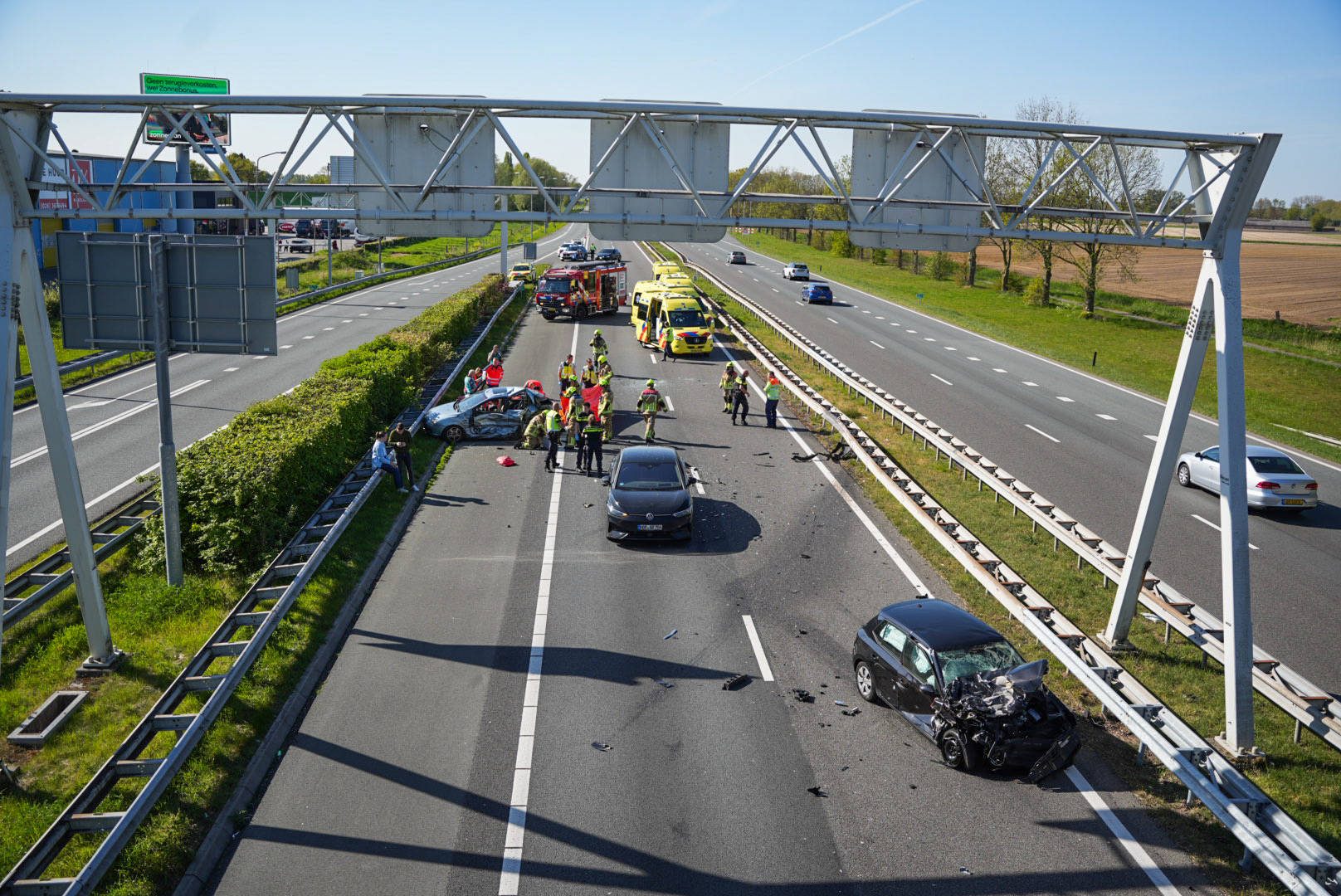 Rond 16:30 uur werd de politie gealarmeerd voor een ongeval waarbij zeven voertuigen betrokken waren. De politie spreekt van een kettingbotsing. Hulpdiensten rukten massaal uit om assistentie te verlenen. Naast vier ambulances werd ook een traumahelikopter ingezet.