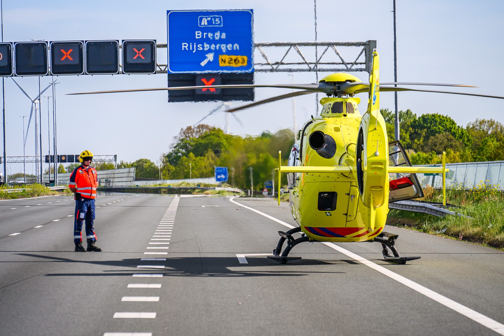 De hulpverlening werd ondersteund door een traumahelikopter, die vlakbij het ongeval landde. Terwijl er één rijstrook open bleef voor het overige verkeer, werd het verkeer richting de Belgische grens volledig stilgelegd tijdens het landen en opstijgen van de helikopter.