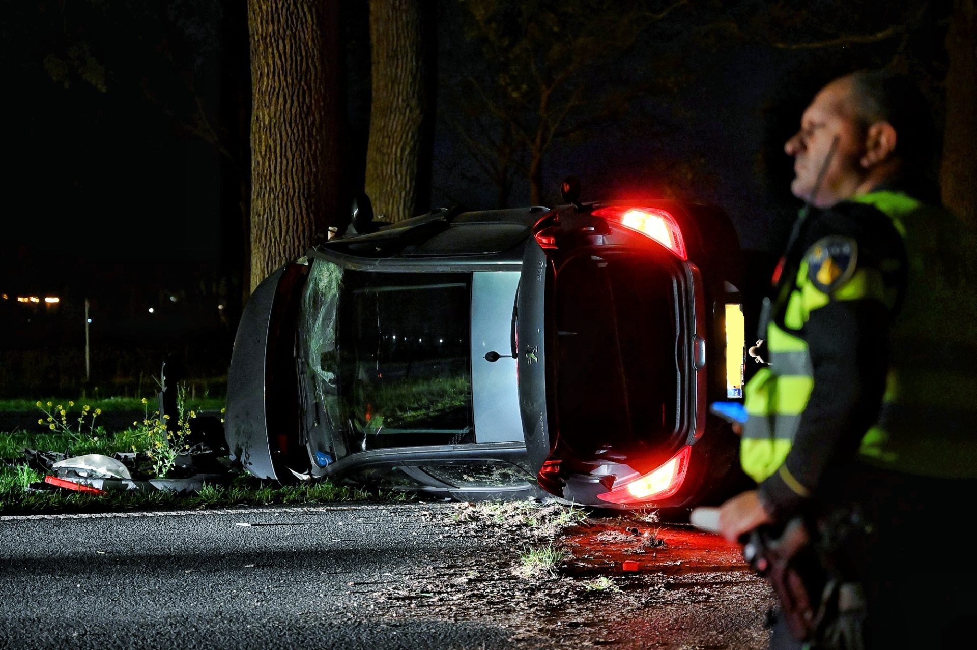 Kort daarna kwam er een melding van een tweede ongeval, dit keer op de N65 bij Udenhout. Een jonge man was tegen een boom gereden en was op zijn kant terechtgekomen. Hij kwam vanaf Oisterwijk, raakte de middenberm en botste frontaal op de boom. Ook hij had Koningsnacht gevierd en was onder invloed van alcohol. De man werd nagekeken door een ambulance en later aangehouden voor een alcoholtest op het bureau, waar bleek dat zijn promillage veel te hoog was. Het wrak van zijn auto werd door een berger afgevoerd.