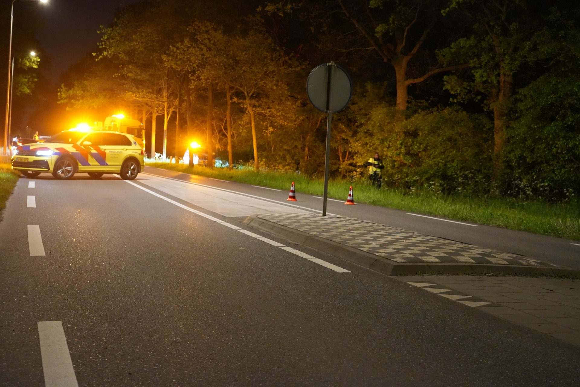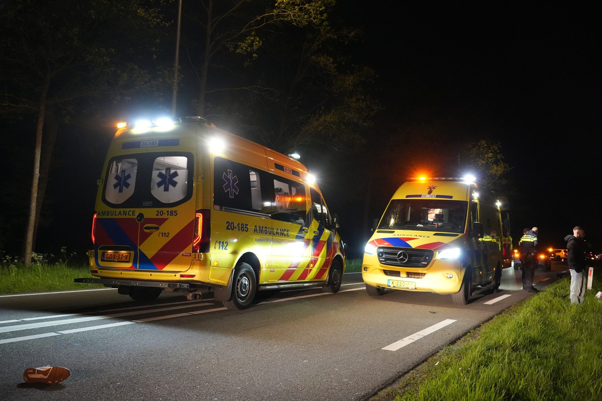 De bestuurder van de motor is door agenten aangehouden. De weg is volledig afgesloten voor onderzoek naar het ongeval.