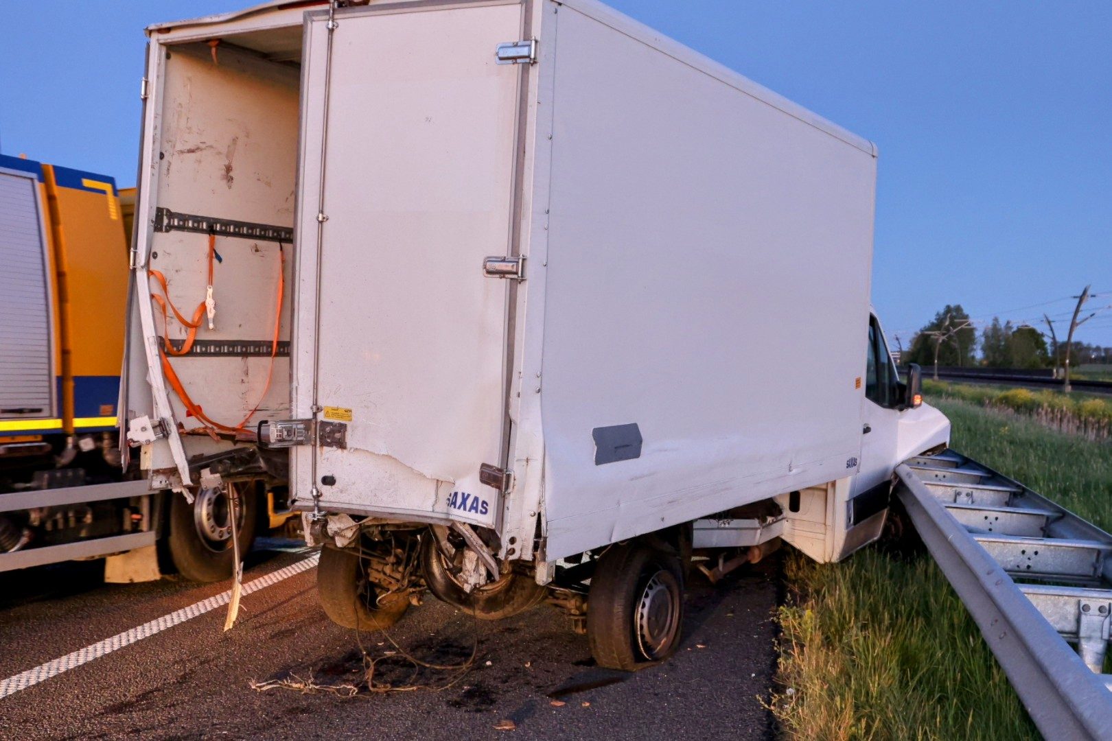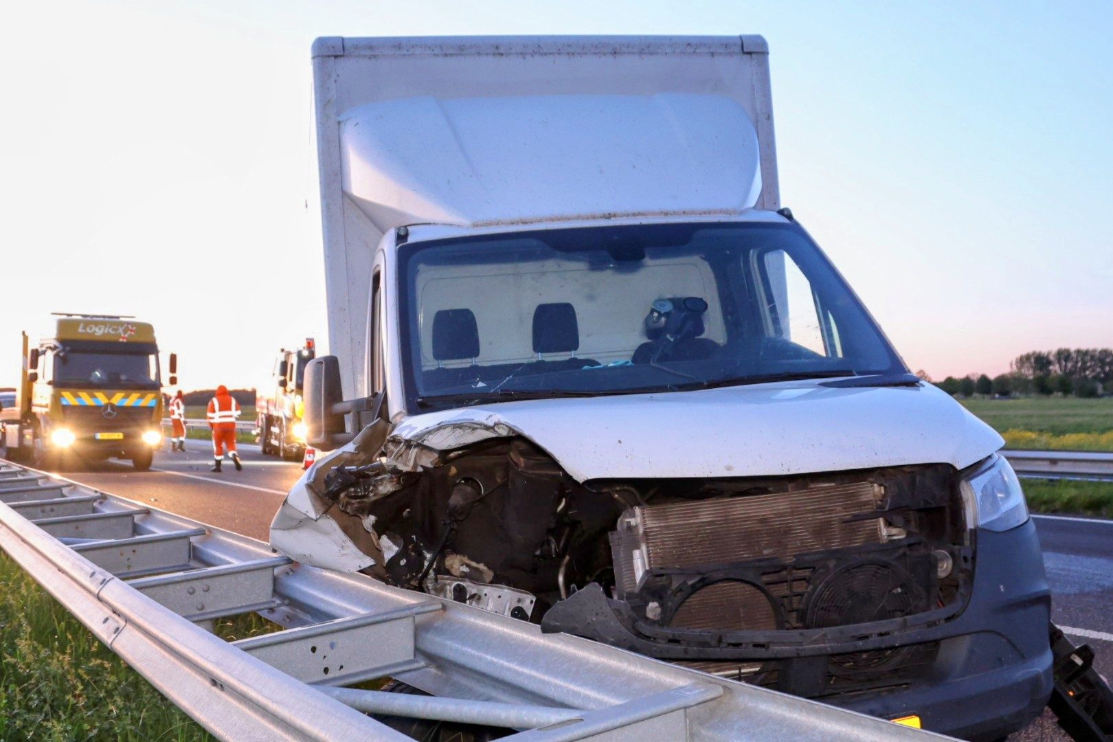 Een personenauto botste hard achterop een bakwagen. Door de klap kwam de bakwagen tegen de vangrail terecht. Eén persoon raakte gewond en is met een ambulance naar het ziekenhuis gebracht.