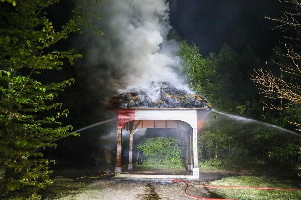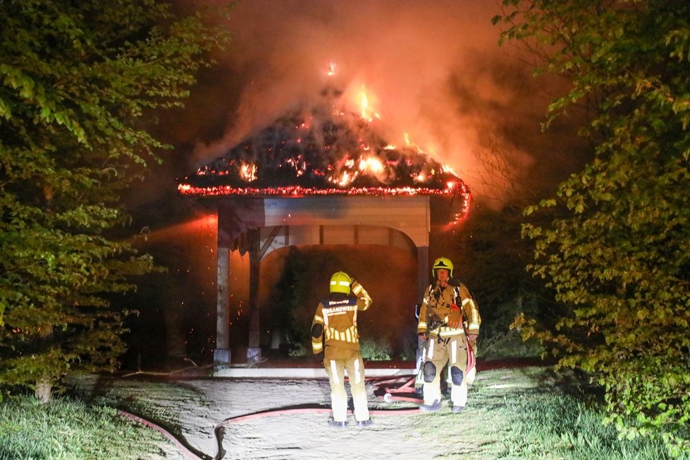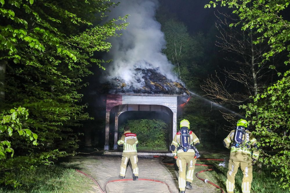 BARNEVELD – Het prieel in het Schaffelaarsebos in Barneveld is dinsdagavond rond 23.00 uur getroffen door een flinke brand.