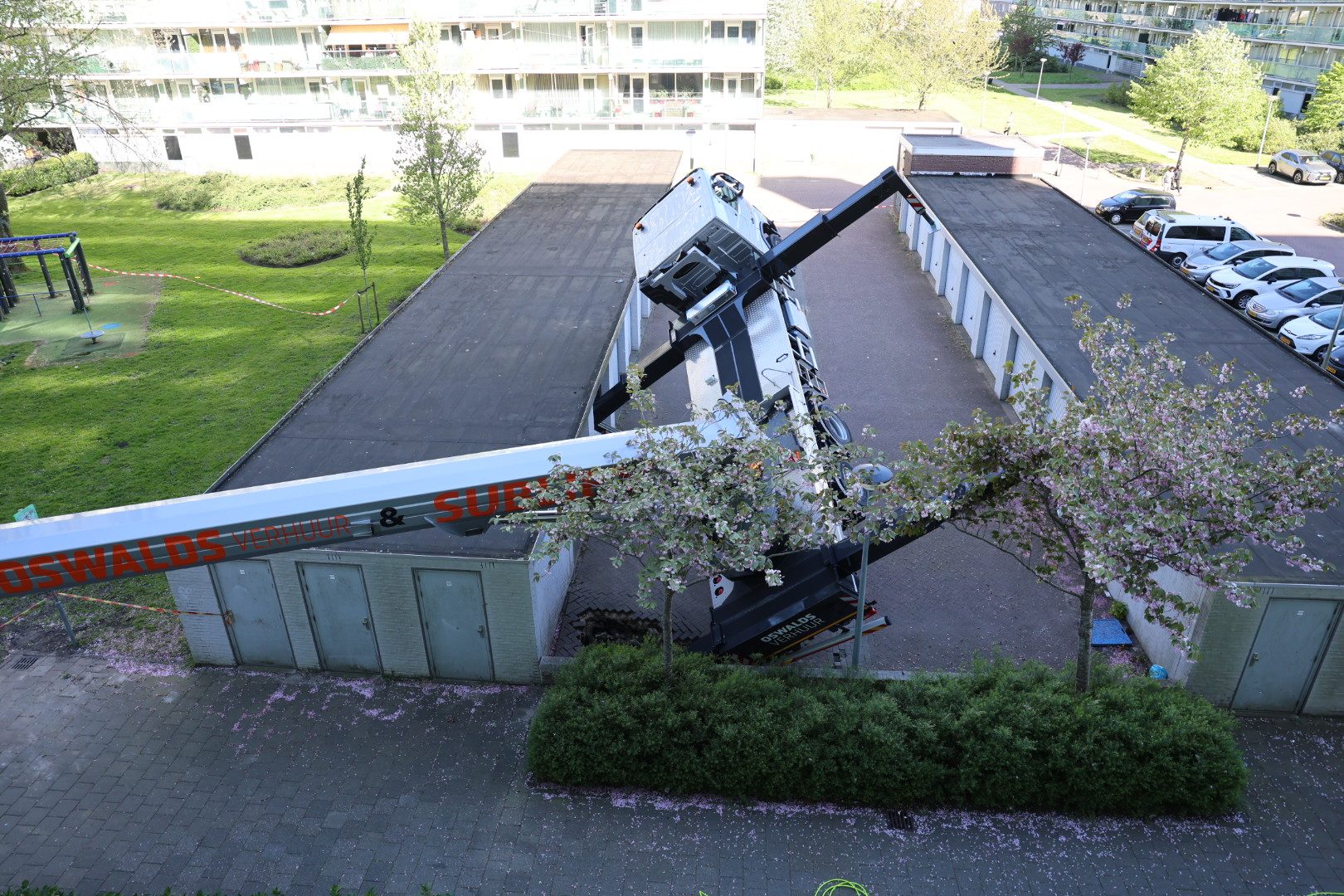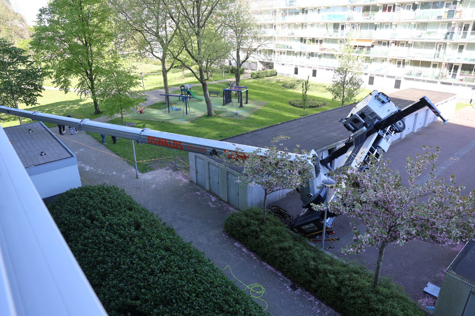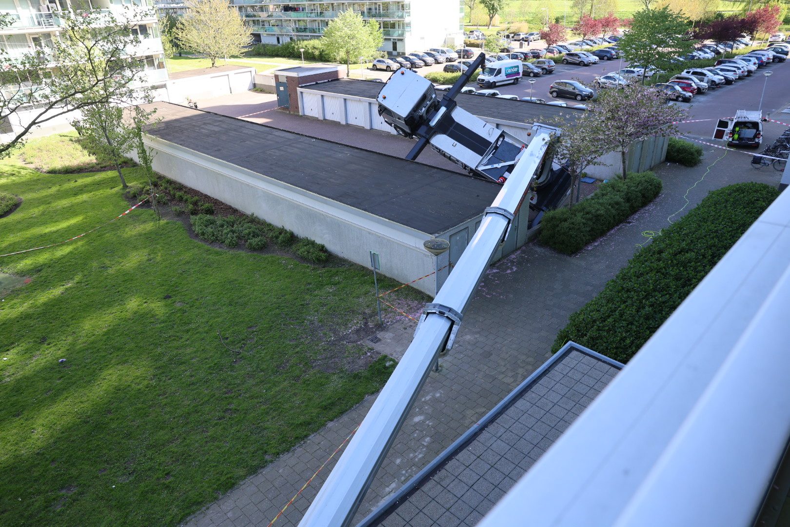 UITHOORN – Bij de Monnetflat in Uithoorn is donderdag een kraan door de ondergrond gezakt en scheef komen te hangen. Het incident trok direct de aandacht van omstanders en zorgde voor een grootschalige inzet van hulpdiensten.